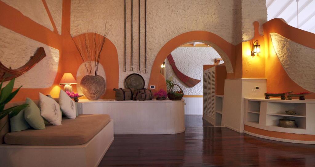 Restaurantul hotelului servește preparate maldiviene, italiene și internaționale, unde se poate savura masa in aer liber, cu briza mării. Există 2 baruri care oferă vinuri fine.
