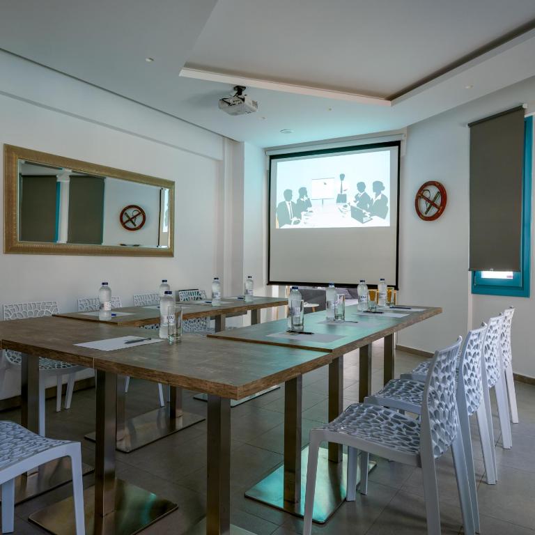 Cazare confortabilă: Hotelul Nikolas din Karterados oferă camere confortabile cu aer condiționat, băi private și facilități moderne. Fiecare cameră include un aparat de ceai și cafea, birou și articole de toaletă gratuite.