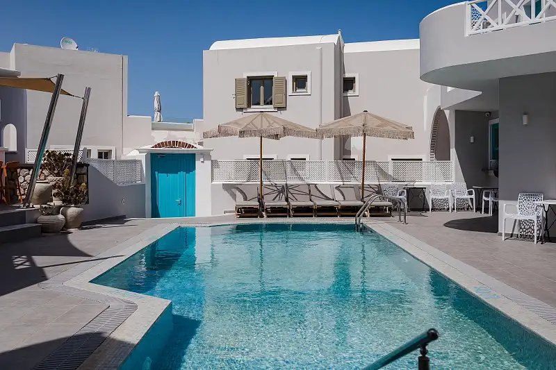 Nikolas is a hotel with high standard facilities. It has a breakfast room, an outdoor whirlpool tab (not heated), a large seasonal swimming pool with pool bar and pool terrace with beach beds and tables where you can enjoy a cool, refreshing drink.