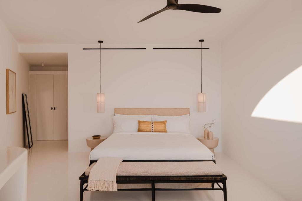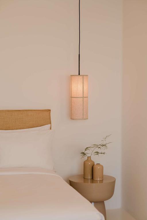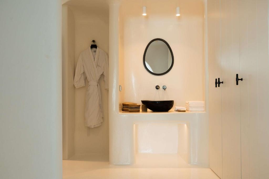 Hotelul imbină perfect designul minimalist specific insulelor grecești cu eleganța și rafinamentul caracteristic brandului Nobu. Camerele și suitele, decorate in nuanțe naturale de alb și gri, dispun de terase private cu vedere la mare, multe dintre ele avand și piscine private cu infinity edge.
