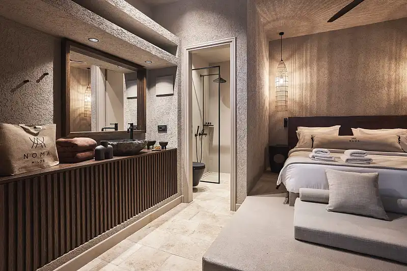 Noma is a peaceful paradise dressed in earthy colors, ready to welcome your journey to physical and spiritual relaxation. Noma’s serene location with the dramatic views of the Aegean Sea and the mountainous setting will become your wellness retreat in Milos.