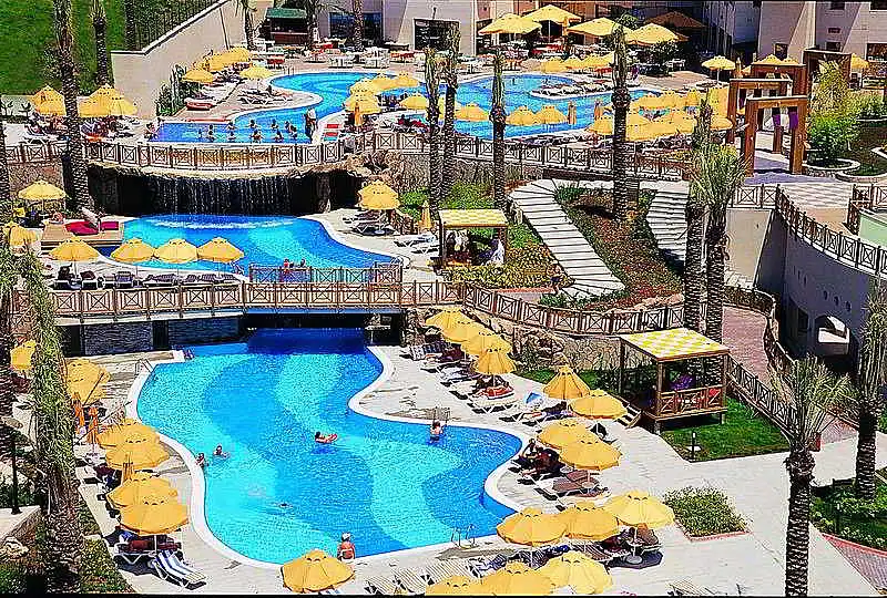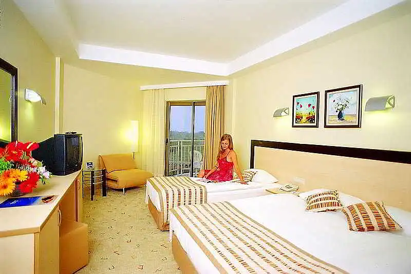 The hotel was built in 2005 and comprises a 6-storey building with a total of 289 rooms and 618 beds. It is fully air-conditioned and features a lobby with a 24-hour reception and check-out service, as well as a hotel safe, currency exchange facilities and lift access. There is a hairdressing salon, a bar, disco and restaurant, as well as games and TV rooms, conference facilities and WLAN Internet access (fees apply). For an additional fee guests can use the laundry service, whilst guests arriving by car may leave their vehicles in either the undercover or open-air car parks. Children will enjoy the kids club and playground.