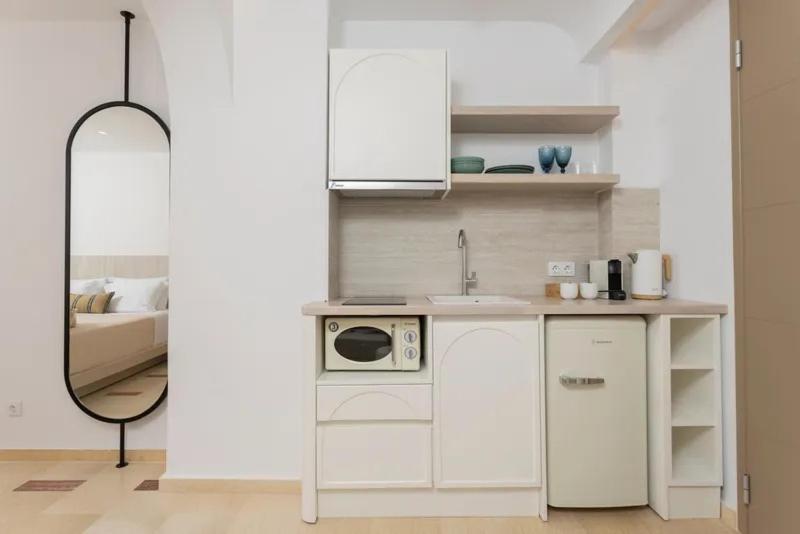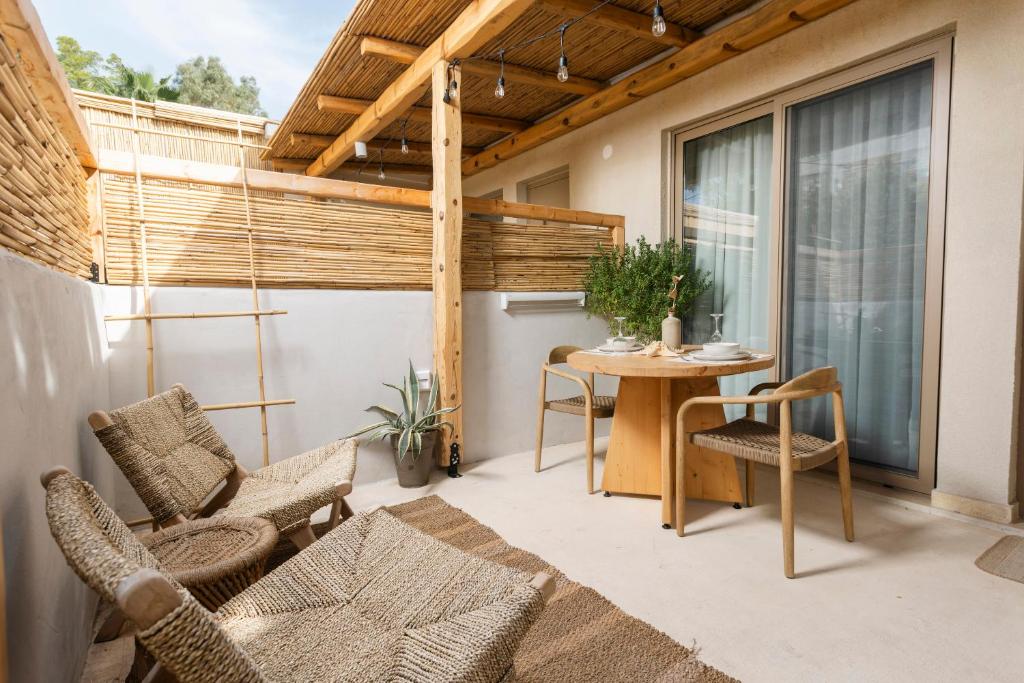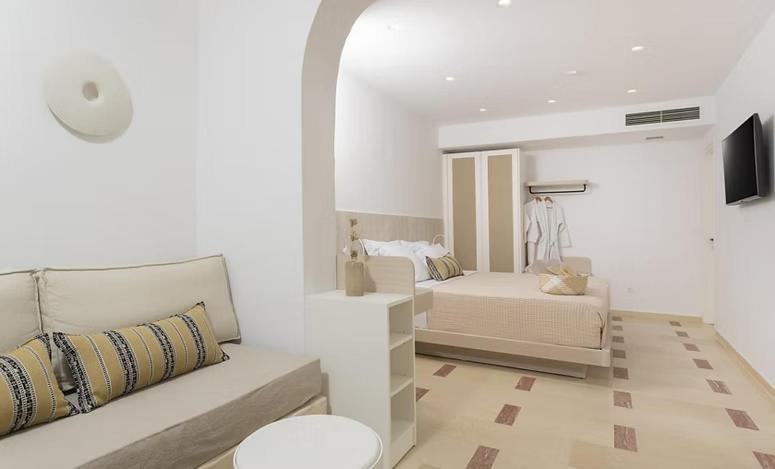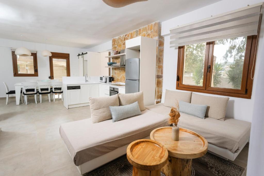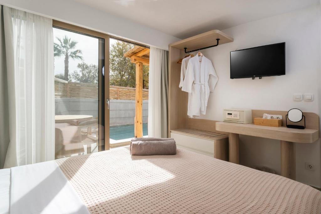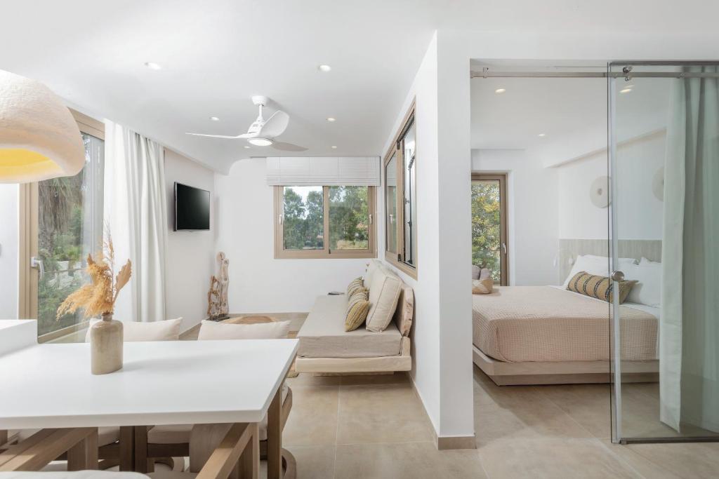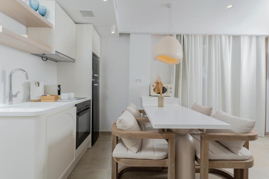 Unitățile de cazare sunt dotate cu bucătării complet echipate, living spațios și terase private care permit oaspeților să se bucure de clima mediteraneană. Fiecare suită și vilă beneficiază de design minimalist, mobilier contemporan și finisaje de calitate.