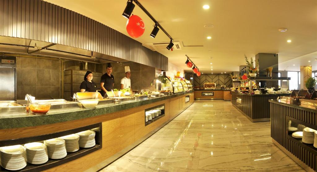 Restaurantul de la proprietate servește mancăruri internaționale și bufete de cină cu specific turcesc. Oba Star oferă un bar pe plajă, unde oaspeții pot savura băuturi revigorante.