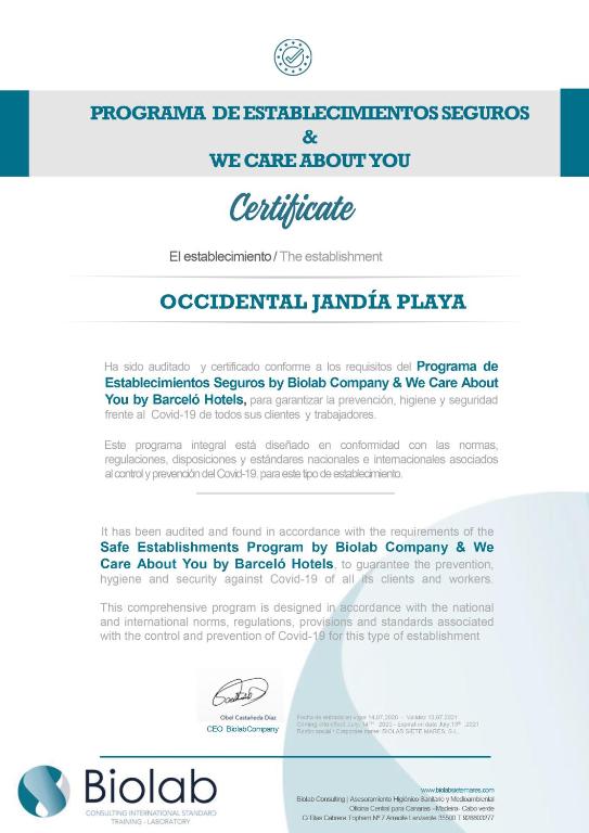 Oferind o piscină in aer liber, cadă cu hidromasaj și paturi balineze, luxosul Occidental Jandía Royal Level, exclusiv pentru adulți (fostul Barceló Jandia Club Premium), este situat la 400 de metri de plaja Jandía din Fuerteventura.