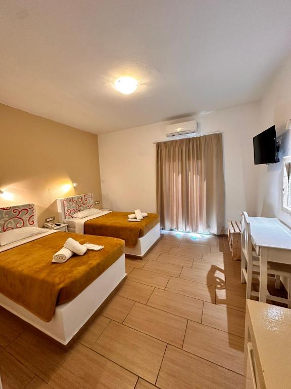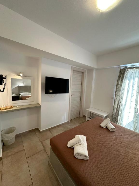 Acest hotel pune la dispoziția oaspeților camere cu aer condiționat, dulap pentru haine, ibric electric, cutie de valori, televizor cu ecran plat, balcon și baie proprie cu duș. Baia proprie oferă articole de toaletă gratuite. La OMIROS HOTEL, camerele oferă lenjerie de pat și prosoape.
