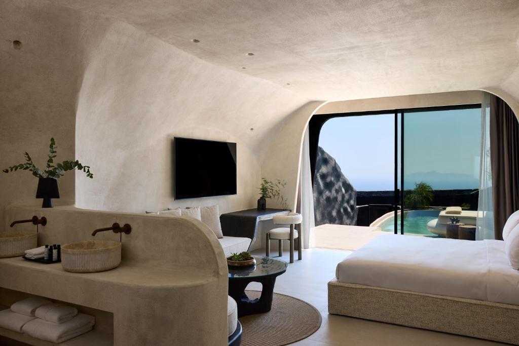One of One Hotel se află in Imerovigli, la aproximativ 2,8 km de Muzeul de Arheologie din Santorini și la 12 km de Portul din Santorini. Proprietatea pune la dispoziție un lounge comun și WiFi gratuit in intreaga proprietate, precum și parcare privată gratuită. Acest hotel de 5 stele oferă o recepție deschisă nonstop și un serviciu de concierge. Personalul proprietății poate organiza servicii de transport de la/la aeroport.