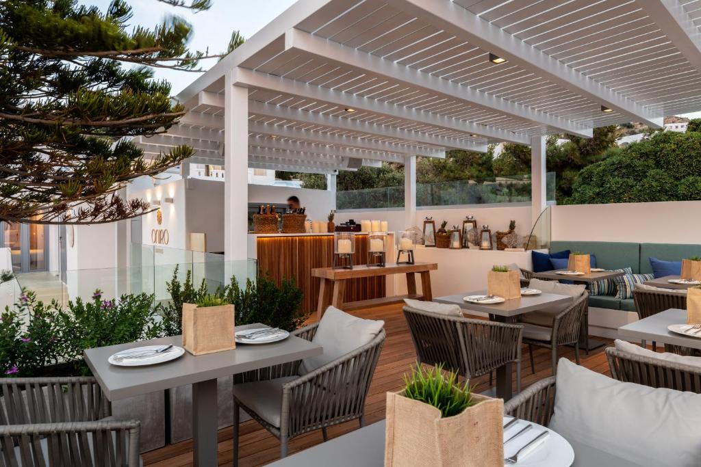 Punctul forte al proprietății este piscina infinity cu vedere panoramică spre Marea Egee, inconjurată de șezlonguri și umbrele. Restaurantul à la carte servește specialități mediteraneene, iar barul de la piscină oferă cocktailuri rafinate și gustări ușoare pe tot parcursul zilei.