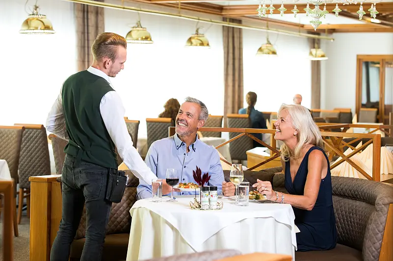 The cozy and friendly restaurant exudes a relaxing atmosphere. The reading corner offers the ideal ambience for quiet hours. Entertaining conversations and tasty drinks at our stylish hotel bar round off the culinary spa day.