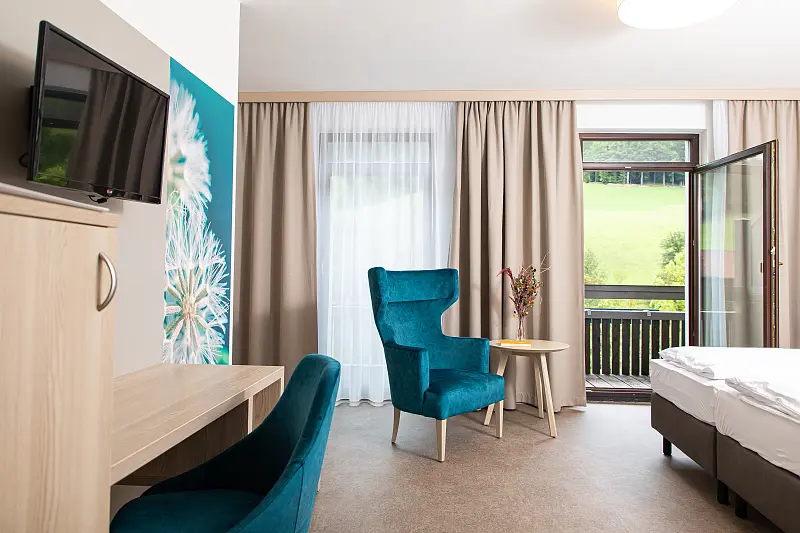 Around our house you will find a wide range of options for a varied active holiday. Explore the beautiful meadows and forests in the area. Some paths lead directly from our house. Choose one of the many well-known hiking routes or cycle paths around Kleinzell. But other sporting activities such as climbing, tennis, golf, swimming and cross-country skiing are also possible in the nearby area. Our modernly equipped fitness rooms with TECHNOGYM strength and endurance equipment leave nothing to be desired. Benefit from the expertise of our physiotherapists, who will be happy to work out an individual training program with you and accompany you during training.