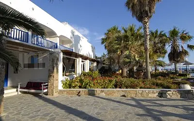 situat in statiunea Ornos, pe plaja,la doar 4km fata de Mykonos, 100m fata de statia de autobuz si 50m fata de zona de restautante si baruri.