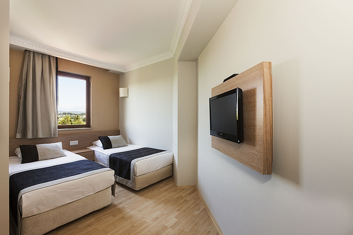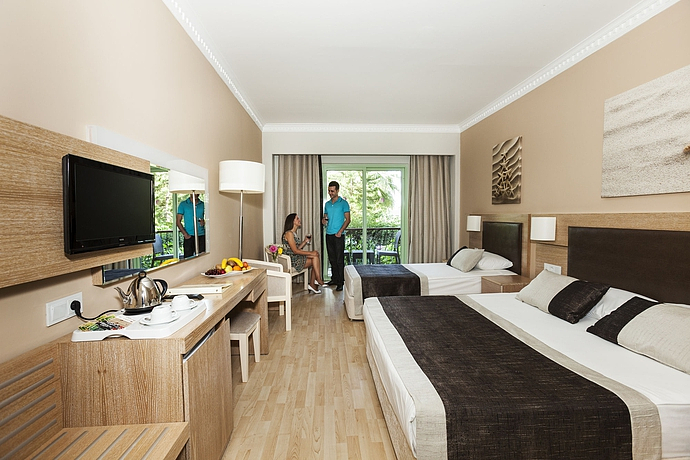 HOTEL: Este hotel cuenta con 7 edificios, 362 habitaciones, 204 habitaciones estándar, 55 habitaciones triples y 3 habitaciones adaptadas a personas con movilidad reducida. Este edificio con climatización, cuenta con un vestíbulo con recepción, caja de seguridad, servicio de cambio de moneda y ascensores. Los clientes pueden encontrar tiendas, habitación de juegos, salón para ver la televisión, internet, salón de peluquería, bares, restaurantes, salas para conferencias, sala de reuniones y alquiler de bicicletas. Para los niños cuenta con un patio de juegos para los mas pequeños y un miniclub. Además cuenta con servicio de lavandería con cargo adicional, servicio de habitaciones, parking y garaje. SITUACIÓN: Este hotel, está a 250 metros de la playa. Está situado a 300 metros de Colakli, donde puede encontrar restaurantes, una parada de transporte público, bares y tiendas. Se localiza a unos 11 kilómetros de Side, donde puede disfrutar de lugares de interés turístico y discotecas. Este hotel, está a 13 kilómetros de Manavgat, a 85 kilómetros está situado Alanya, a unos 55 kilómetros está situado el aeropuerto de Antalya. HABITACIÓN: Las habitaciones baño con secador de pelo, teléfono de línea directa, teléfono de línea directa, minibar, televisión vía satélite con canales de música, cama doble, caja fuerte, balcón, vistas al mar o la piscina, vistas a la montaña, sistema de aire acondicionado central y calefacción central. INSTALACIONES: Los clientes tienen a su disposición 4 piscinas, piscina climatizada, una piscina cubierta con una parte para los niños pequeños y una piscina de niños. También tiene una terraza para tomar el sol con tumbonas, sombrillas, gimnasia acuática, un gimnasio, una sauna, una pista donde puede jugar al baloncesto, voleibol, volley playa, petanca y un programa de entretenimiento. Se ofrece a los huéspedes servicio de masajes, esquí acuático, barco torpedo, lancha motora, patinetes, vela, ping pong y mesas de billar. COMIDAS: Se ofrece a los huéspedes todas las comidas tipo buffet. Puede reservar en régimen de todo incluido. MÉTODOS DE PAGO: Se admite American Express, Visa, Mastercard y Diners Club.