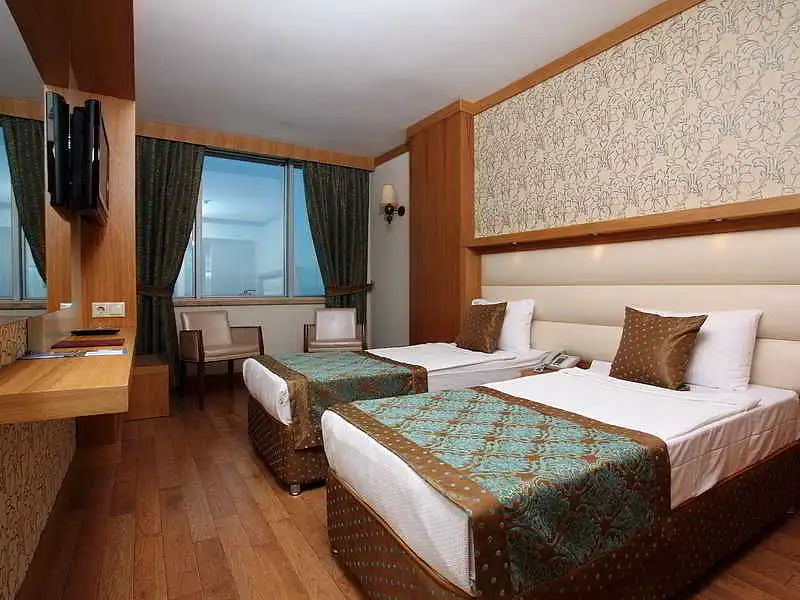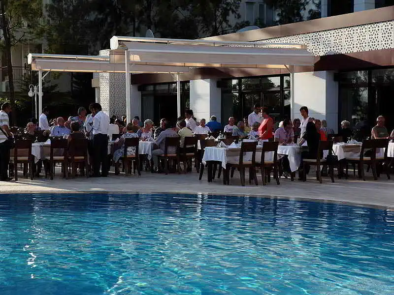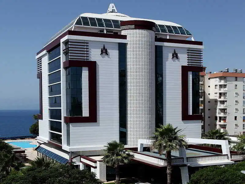 Set high on a cliff-top overlooking the deep blue water of the Mediterranean Sea and rocky grey Bey mountains, this attractive hotel offers spectacular views and comfortable rooms for a luxurious holiday in the sun. The hotel is just outside the city of Antalya in the Lara beach area, where aside from sea and sun, visitors can enjoy remarkable cultural attractions such as Hadrians Gate, the historic old town and several stunning mosques. The hotels rooms are stylish and contemporary with air-conditioning and wireless internet. Guests can relax and rejuvenate in the hotel spa complete with traditional Turkish bath, sauna, Jacuzzi, indoor swimming pool, steam room, vitamin bar and massage services, or simply relax with a book by the shimmering outdoor pool. The hotel restaurant serves a varied and wholesome breakfast buffet as well as lunch and dinner, and there is also an a la carte seafood restaurant where guests can enjoy panoramic views and delicious coastal cuisine.