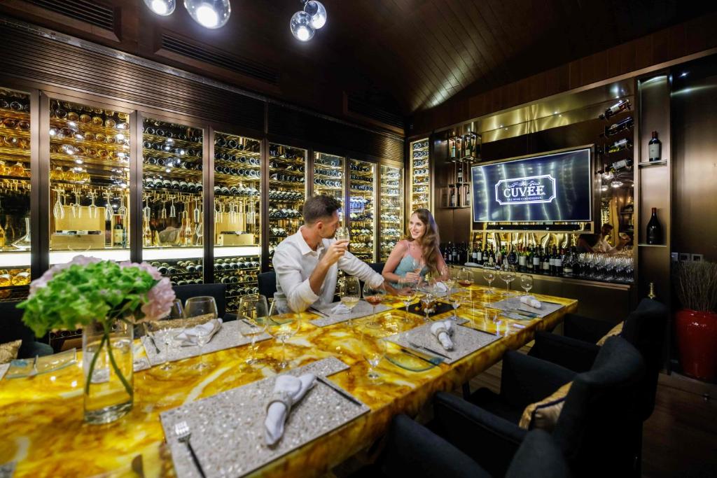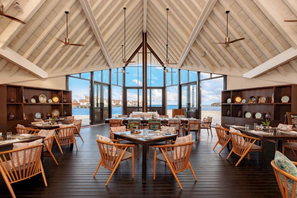 Oaspeții pot lua masa in splendoarea Maldivelor, in timp ce admiră vederea superbă la Oceanul Indian. Complexul oferă o varietate de experiențe culinare și bucătării, inclusiv preparate indiene tradiționale, mancăruri revigorante din Orientul Mijlociu servite langă plajă și preparate gourmet din fructe de mare, insoțite de șampanie și vinuri excelente.