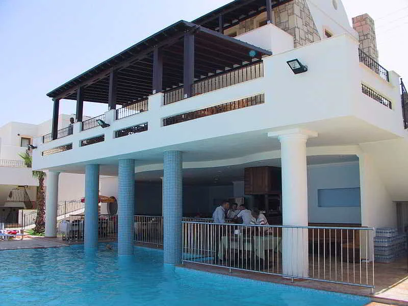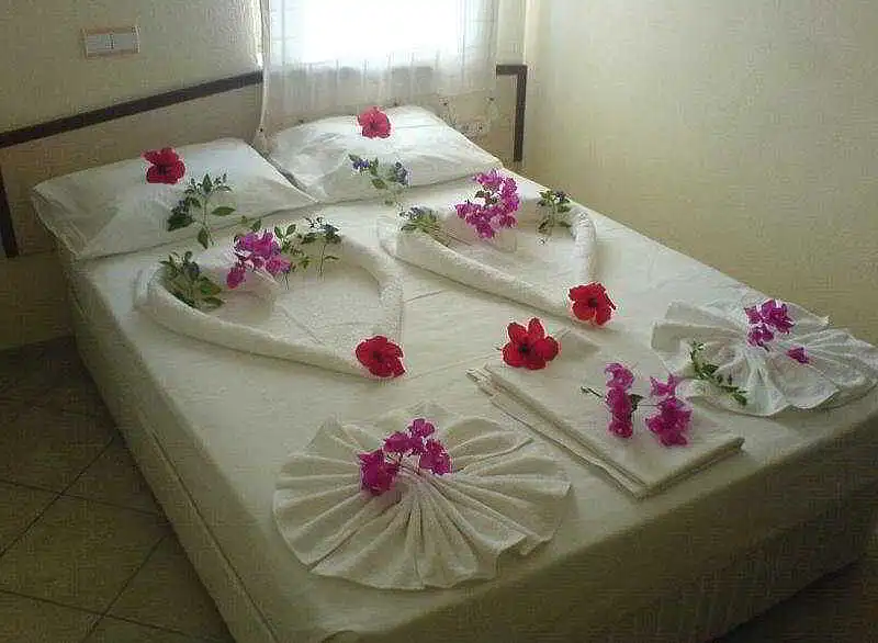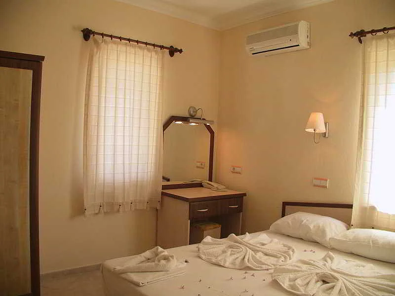 The apartment complex is located in an elevated position approximately a 2-minute walk from the centre of Gumbet and its many bars, shops and restaurants. The local beach is about a six-minute walk away and local transport with links to Bodrum and other nearby resorts is a couple of minutes' walk from the complex. Milas Bodrum Airport is approximately 35 km away.These friendly, family-run apartments were refurbished in 2011 and are built in low-rise blocks on an incline, around the outdoor pool. The premises are air-conditioned and guests are welcomed in a lobby with 24-hour reception and check-out services. Facilities at this aparthotel include a currency exchange, games room, a couple of bars and a restaurant. Guests can also take advantage of the Internet access, room service (fees apply) and the car park. There is a total of 46 guest rooms at the establishment.The 1-bedroom apartments are equipped with a kitchenette suitable for making light meals, a mini fridge, dining/seating area and a double bed. There is air conditioning, individually regulated heating and safety deposit boxes (extra charge applies) as well as a direct dial telephone and satellite TV. Each room has an en suite bathroom with a shower and a hairdryer. Moreover, there is a balcony or terrace for each apartment.The complex has an outdoor swimming pool with a terrace for sun-bathing where sun loungers and parasols are laid out for use. There is a children's section of the pool, a sauna, steam room and Turkish bath with massage treatments (local charge applies). Refreshments are available from the poolside snack bar. There is also a pool table (extra fee applies) and some board games. Sun loungers and parasols are laid out on the sandy beach and can be hired for a fee.The hotel has an on-site restaurant serving Turkish and international cuisine.