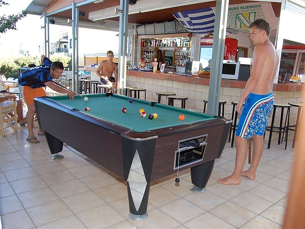 HOTEL: Este hotel cuenta con una recepción con televisión y un bar. Los clientes pueden disfrutar de una piscina y piscina para los mas pequeños. También ofrece a sus clientes internet. SITUACIÓN: Este hotel está a unos 500 metros del puerto de Hersonissos. A un kilómetro está situado el centro urbano. A 1,1 km del establecimiento los clientes pueden encontrar la playa. HABITACIÓN: Dispone de estudios y apartamentos de una habitación. Tienen sistema de aire acondicionado, cuarto de baño, ducha, cocina americana y nevera. También cuentan con televisión vía satélite, teléfono, caja de seguridad y balcón o terraza.