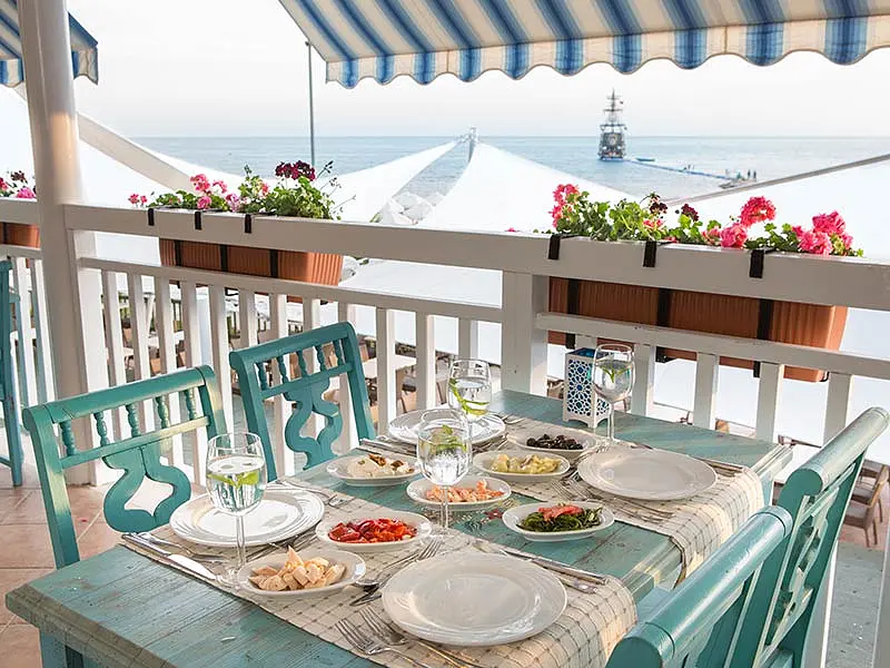 Restaurant principal bufet - Restaurant Paloma, 5 restaurante A`La Carte ,5 baruri. Room service 24 ore, salon de infrumusetare, coafor, spalatorie si curatatorie, medic si asistent medical, babysitter, magazine (servicii contra cost). Animatie pentru adulti si copii, sala internet, muzica live, cinema si discoteca, mini club pentru copii.