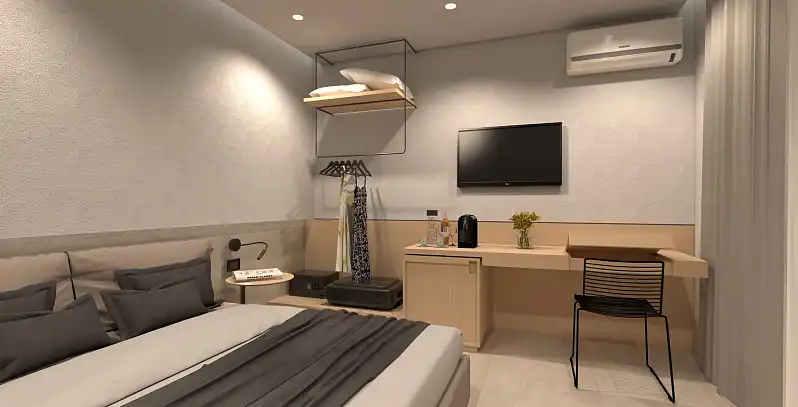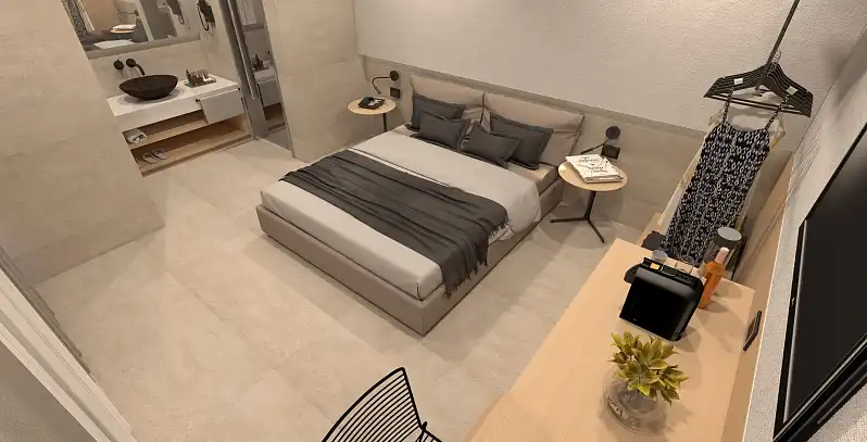 Thalassa Studios are bright with floor-to-ceiling windows opening out to a balcony. Each has a kitchenette with refrigerator and a private bathroom with shower. Facilities also include a satellite TV and a safety box.