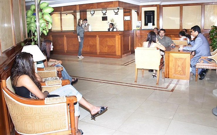 HOTEL: Este hotel cuenta con 42 habitaciones. Los clientes disponen de un vestíbulo con cambio de divisas, un restaurante, servicio de lavandería y parking. SITUACIÓN: Está situado en el corazón de Dubai. Está a 2 kilómetros de la bahía de Dubai. En las cercanías del establecimiento los clientes encontrarán zonas de compras, áreas financieras y el transporte público. En las cercanías los clientes disponen de zonas turísticas. A unos 8 kilómetros se sitúa el aeropuerto de Dubai. HABITACIÓN: Disponen de aire acondicionado individual, teléfono, cuarto de baño, secador de pelo, televisión por cable y servicio de mayordomo. Además tienen cafetera, tetera, set de plancha, caja fuerte y minibar. Además ofrece habitaciones para no fumadores. COMIDAS: Se puede encontrar servicio de comida.