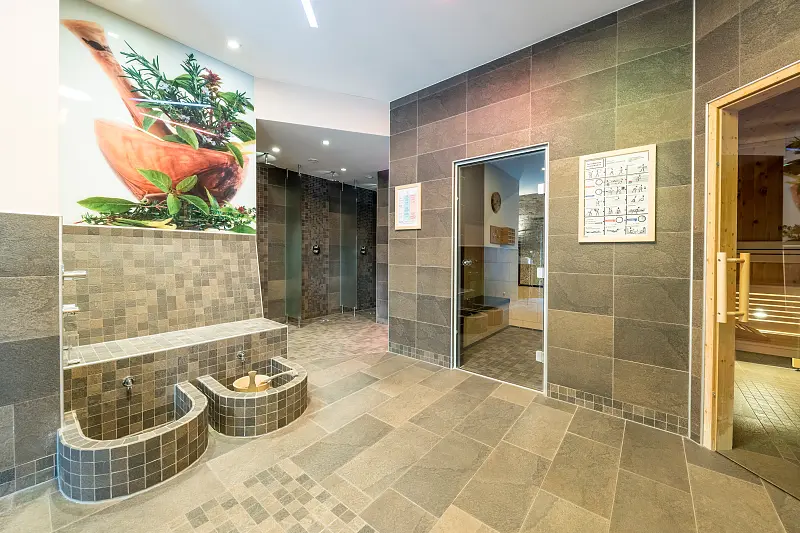 size wellness area 400 m², indoor swimming pool 100 m², steam bath, sauna, finish sauna, bio sauna, infrared cabin, whirlpool - free of charge, relax room, nudity area, massage - optional payable in resort, lawn, deck chair - free of charge, sun umbrellas - free of charge