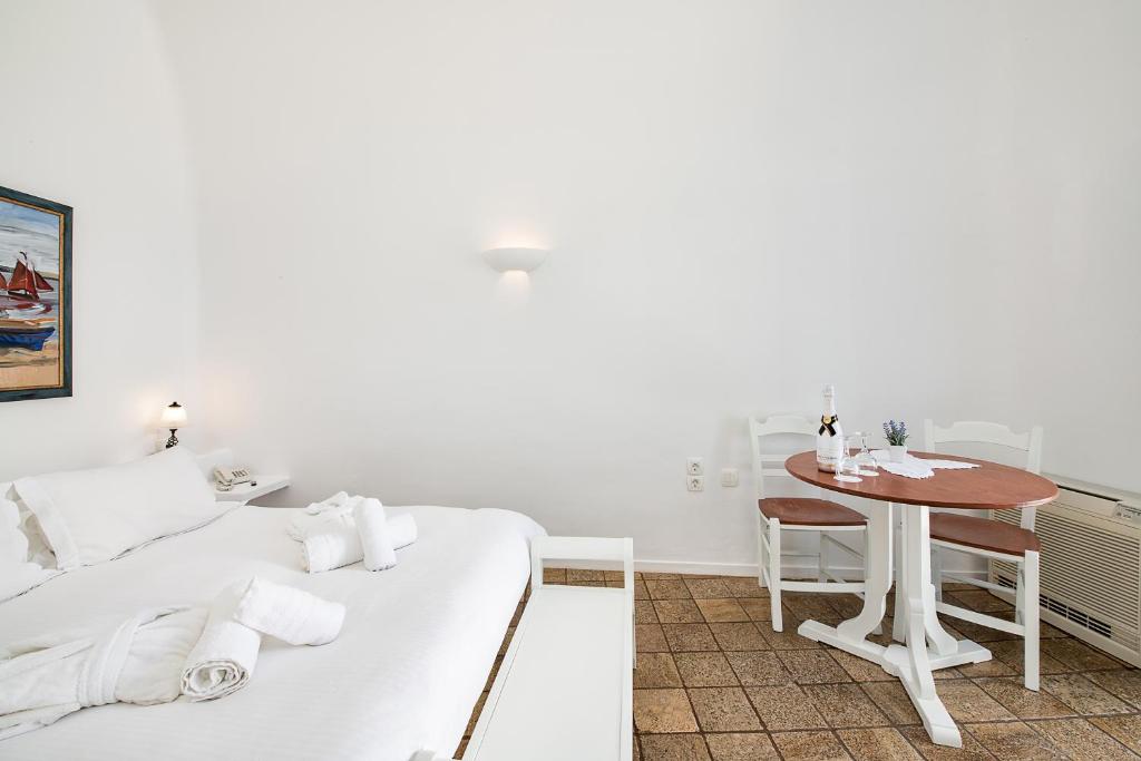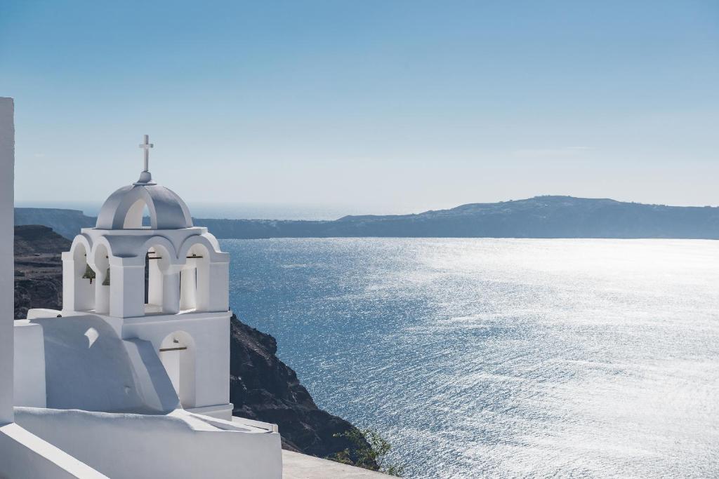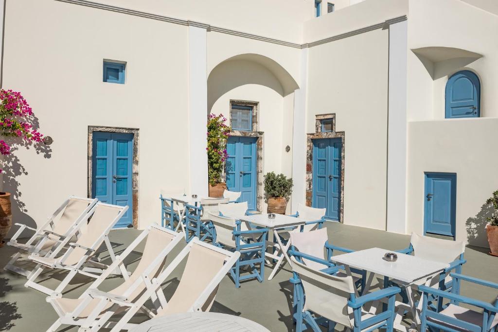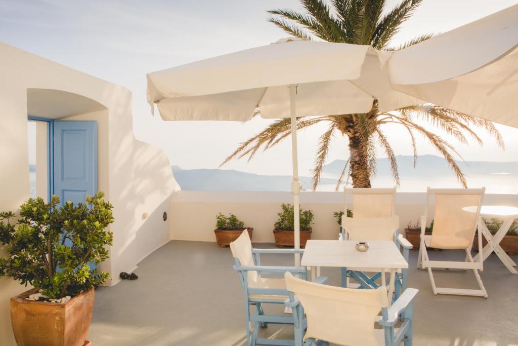 Hotelul este situat in Fira, capitala insulei, pe stancile calderei, cu vedere superbă la vulcan și faimoasele apusuri de soare din Santorini.