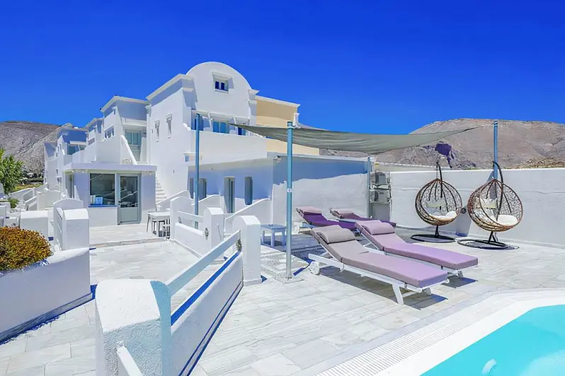 4,5 / 5 Tripadvisor.com Hotel renovat, localizat ideal in Perissa, in prima linie la plaja (beachfront). Pune la dispozitia turistilor piscina exterioara si plaja privata.