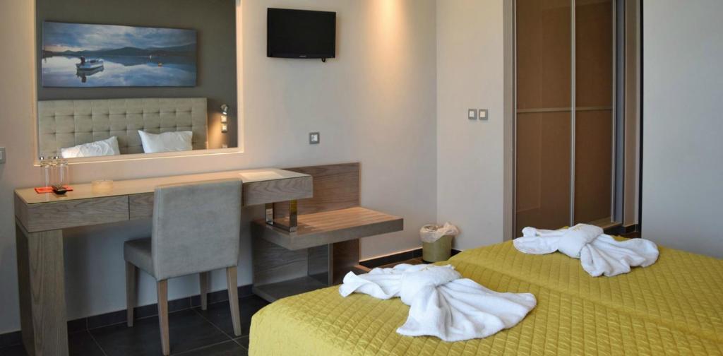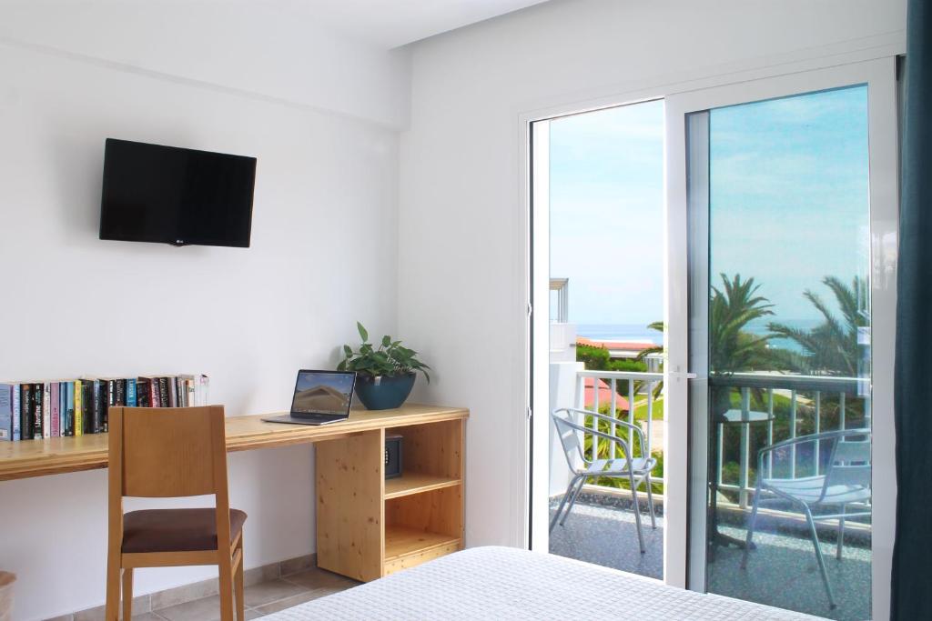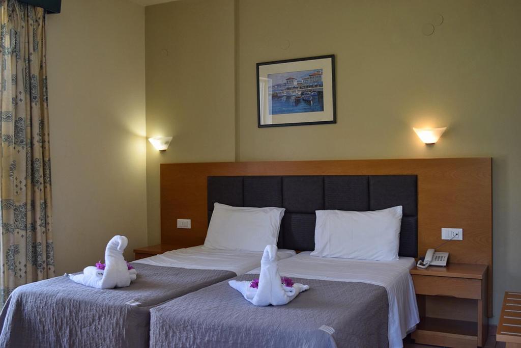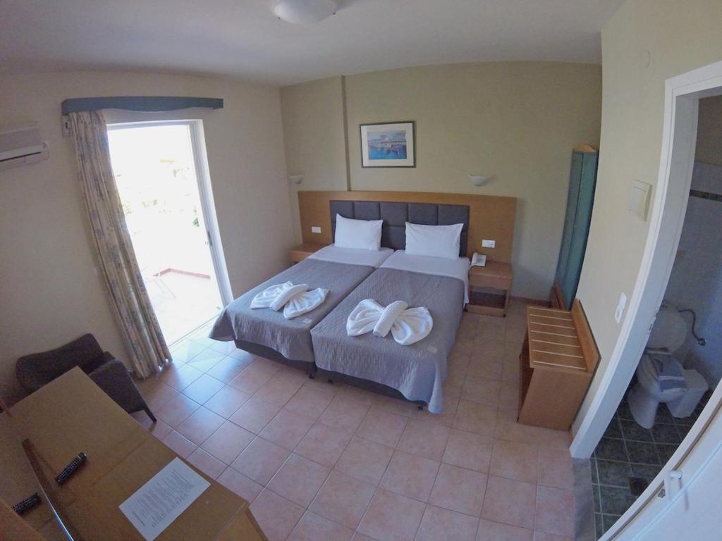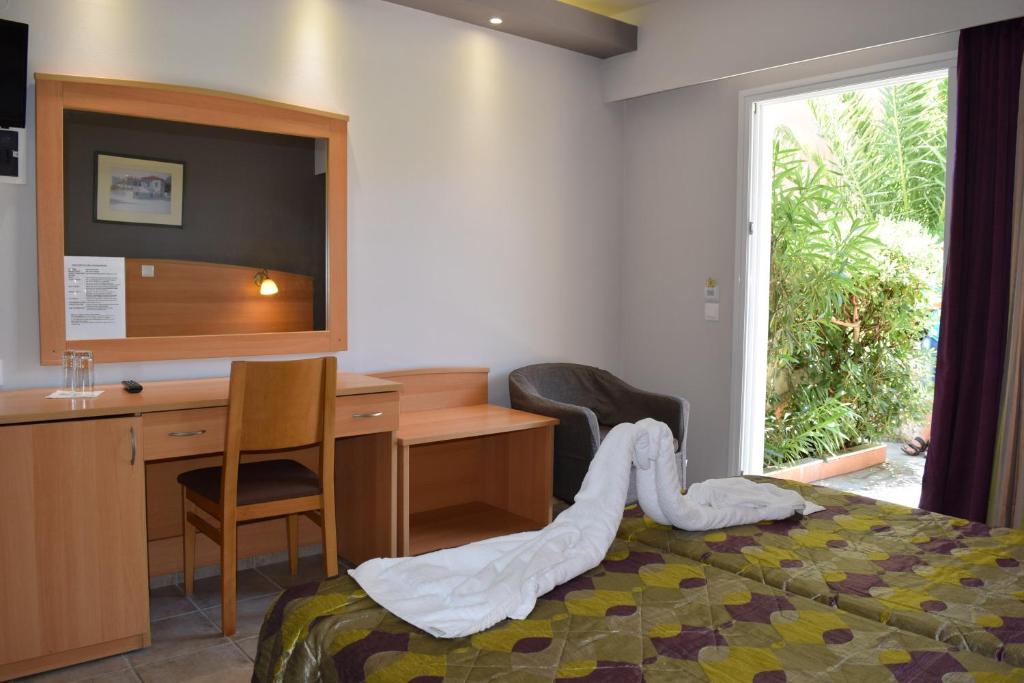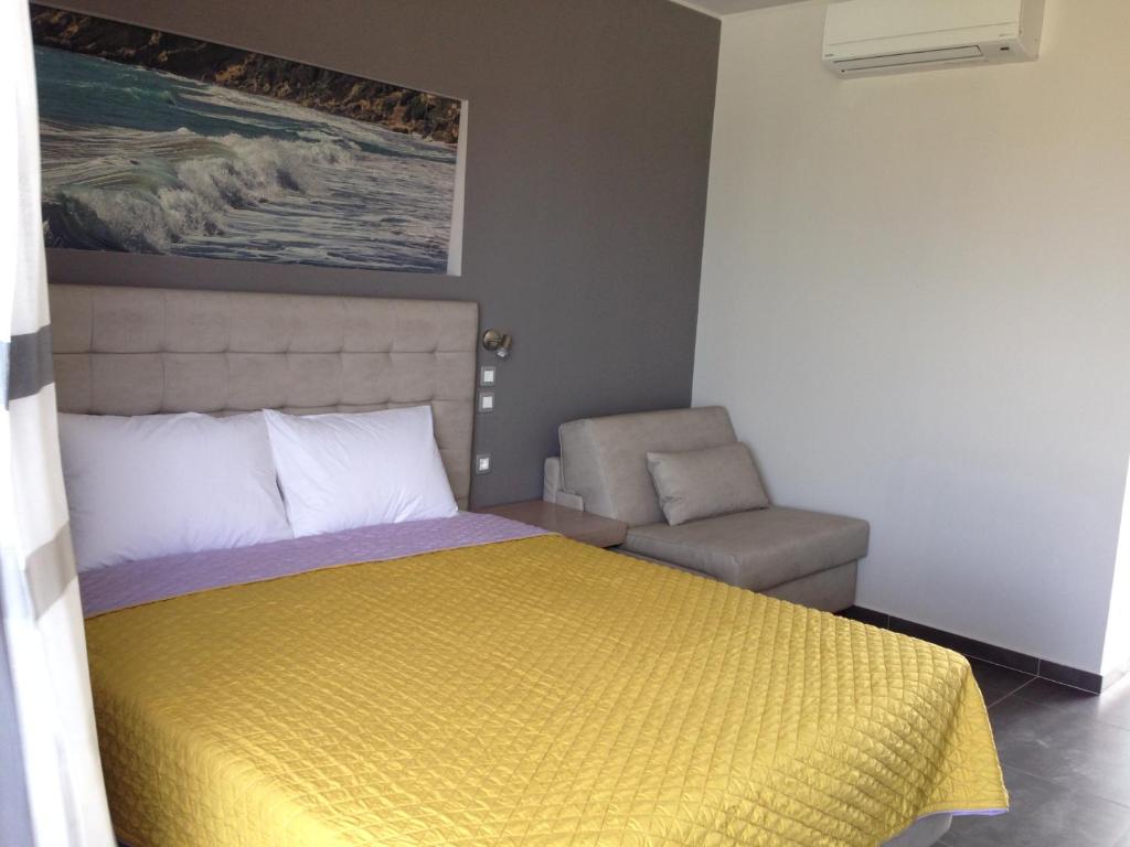Cu vedere la Marea Ionică de la balcon, camerele hotelului Paspalis sunt dotate cu aer conditionat, seif, frigider si TV cu canale prin satelit. Fiecare include o baie privată cu dus si uscător de păr.