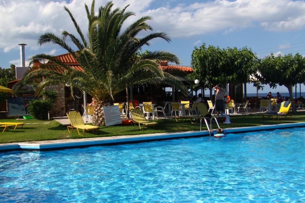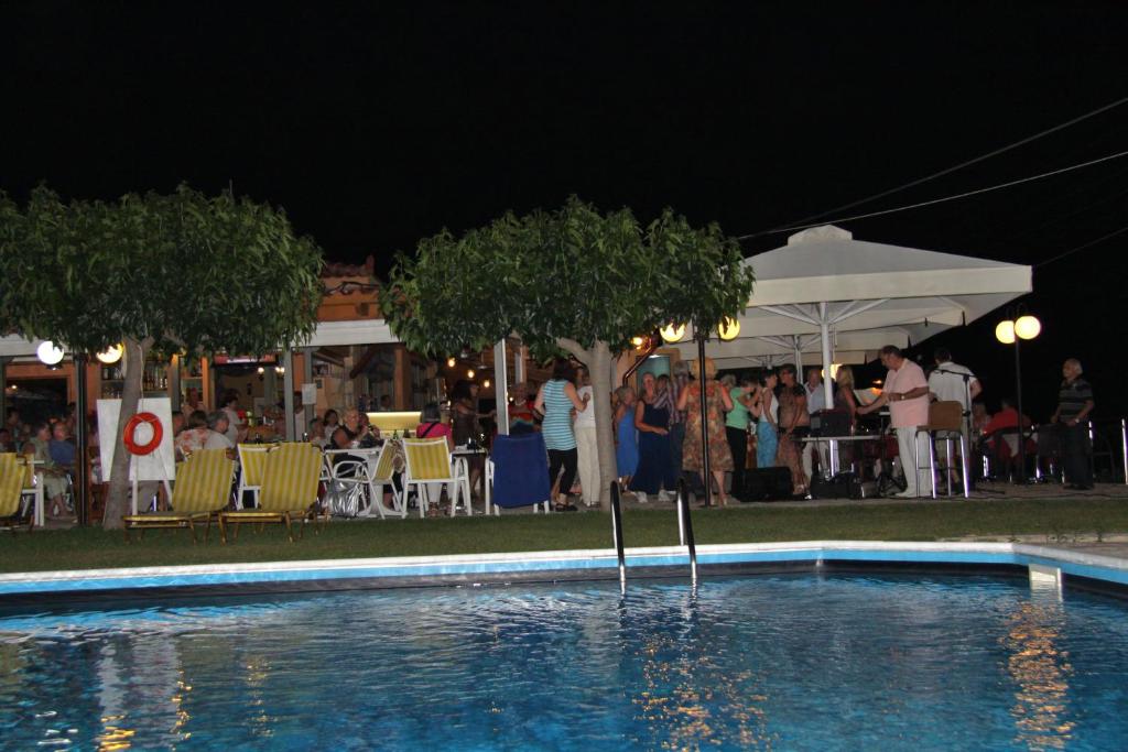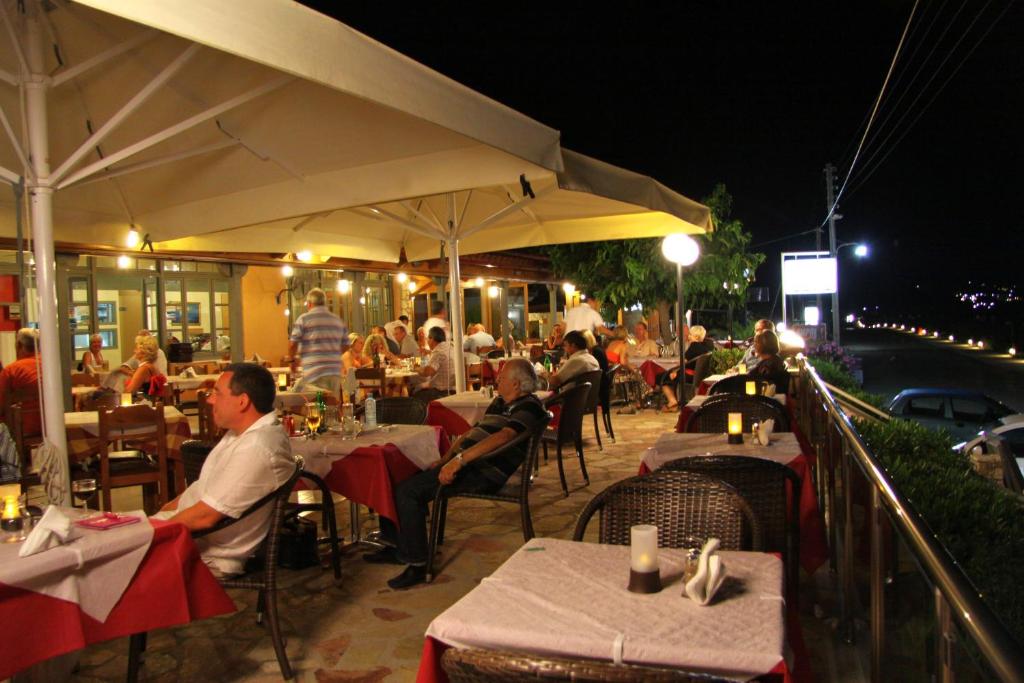Oaspetii se pot relaxa pe sezlongurile de langă piscină si pot savura o cafea rece sau un suc răcoritor la snack bar. De asemenea, restaurantul oferă preparate mediteraneene pentru pranz si cină.
