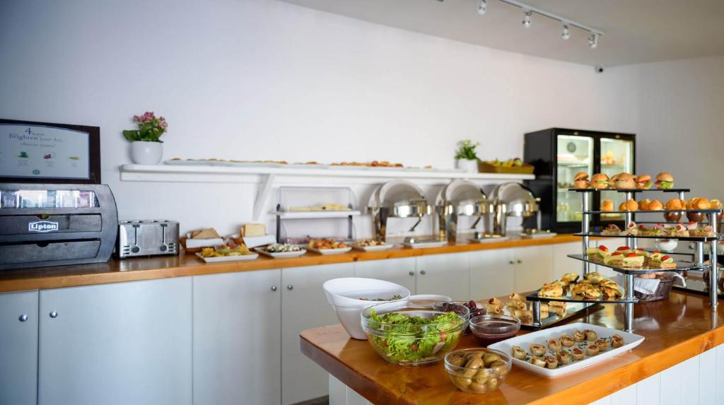 Oaspeții iși pot incepe ziua cu un mic dejun sau se pot bucura de mese ușoare și băuturi răcoritoare la snack bar, bucurandu-se de vederea la mare și la piscină. Restaurantul gourmet „Sub stele” din incintă oferă opțiuni pentru pranz și cină.