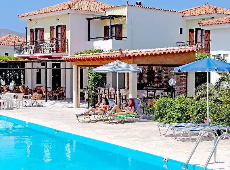 This is unique holiday complex, built in typical Aegean village style and offering guests a real feeling of tradition in its communal areas. This beach hotel comprises a total of 46 rooms, including 2 singles, and offers a garden and a terrace. Facilities on offer to guests at this air-conditioned establishment include a lobby, a hotel safe and a currency exchange facility. There is a dining area, a sitting room with a TV, a café and a car parking facility. Guests may also take advantage of the room service.