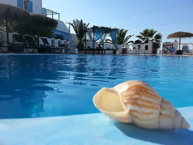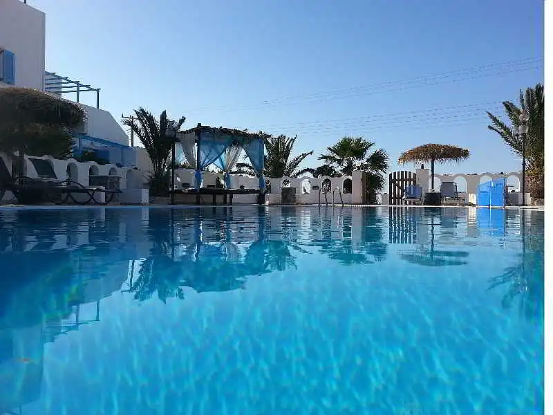 This charming family-owned guesthouse sits in the traditional village of Karterados. It is within a 15-minute walk from Perissa and the seven km long Beach, recognisable by its volcanic black sands and the imposing Mesa Vouno Mountain, which emerges from its crystal-clear waters. The centre of Fira is some 2km away, but guests can use the bicycle rental service of the venue so they can explore the city faster and more conveniently. After they are done with their trip they can enjoy a refreshing dip in the clean outdoor swimming pool and if the still is still up stretch on the sunbeds for some time. For dining they can either grill some meat and veggies on the BBQ or use the common kitchen for preparing some delicious home-like meals.