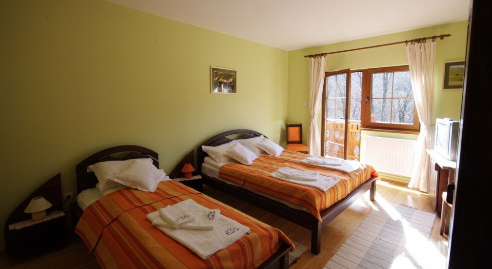 Camere pt. 3 persoane: sunt dotate cu un pat matrimonial şi un pat single, grup sanitar propriu, televizor, minibar.