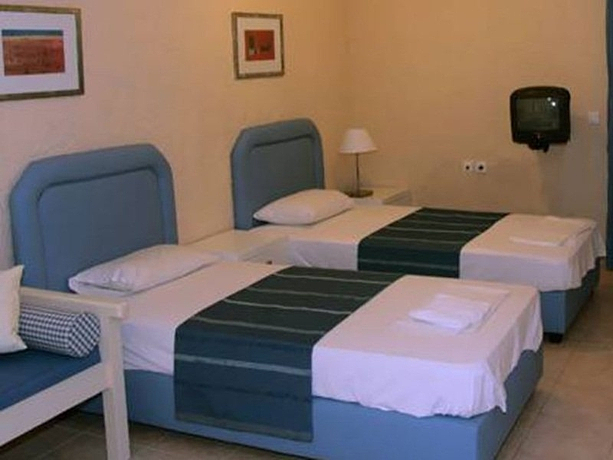 HOTEL: Cuenta con recepción, un bar, una piscina, 2 cafeterías y un parking. SITUACIÓN: Está en el corazón de Agia Pelagia. Está situado en el noroeste de Heraklion. A 300 metros puede encontrar la playa. HABITACIÓN: Cuentan con sistema de aire acondicionado, televisión, teléfono y caja fuerte. Además tienen salón, cocina con cafetera, tostadora, nevera y cuarto de baño con secador de pelo.