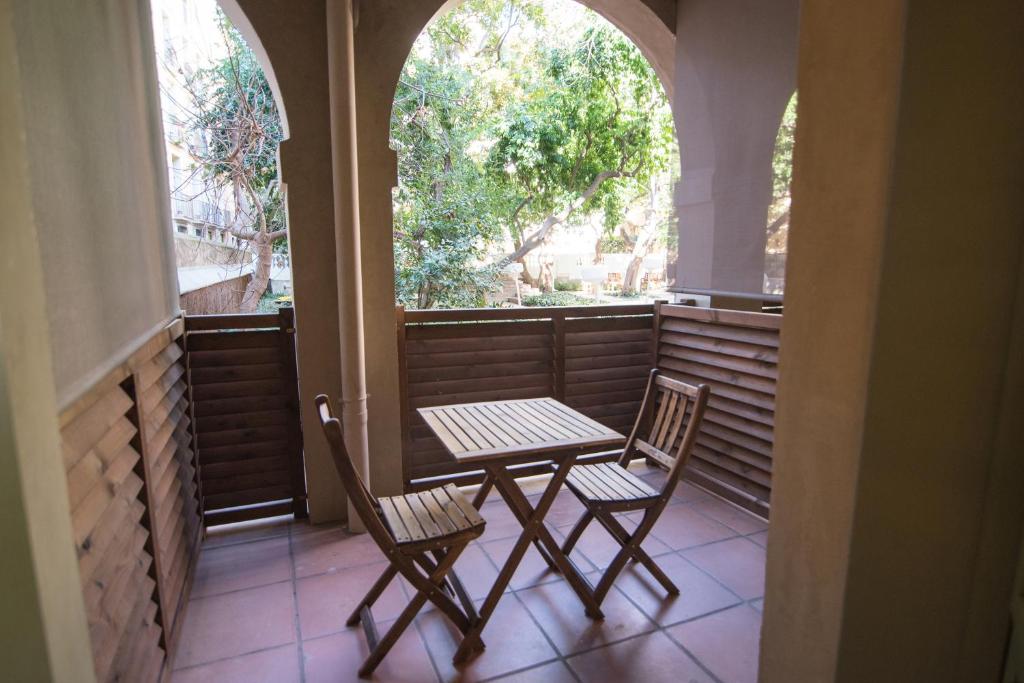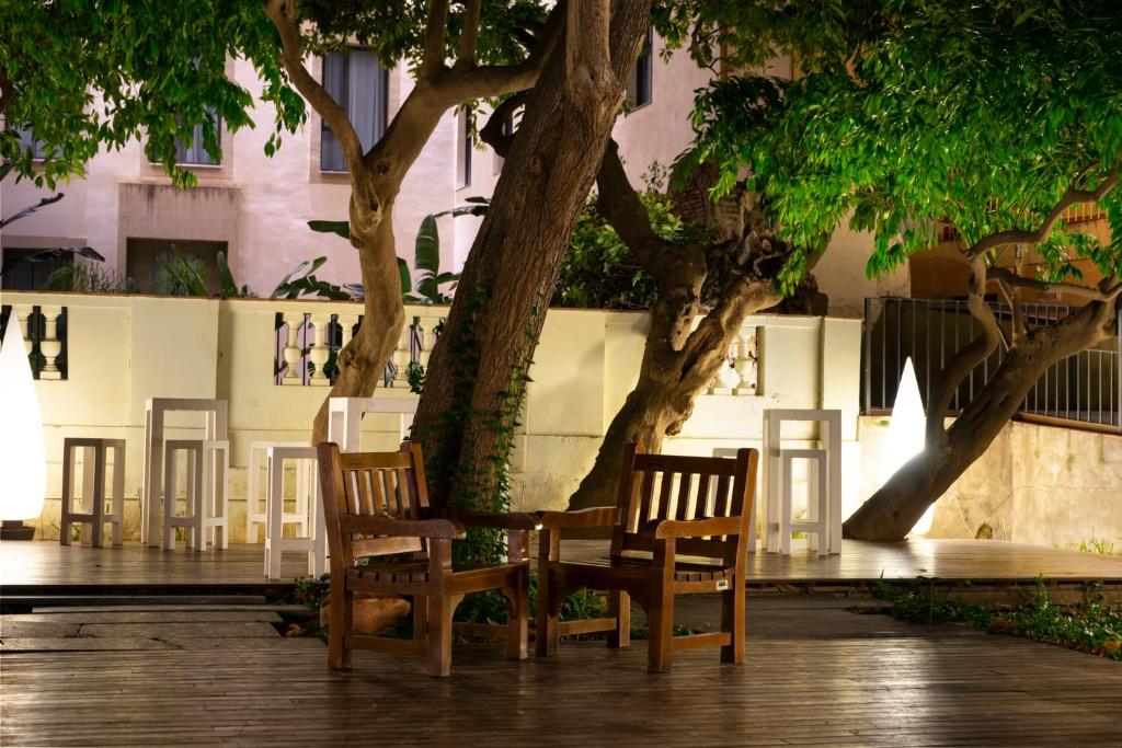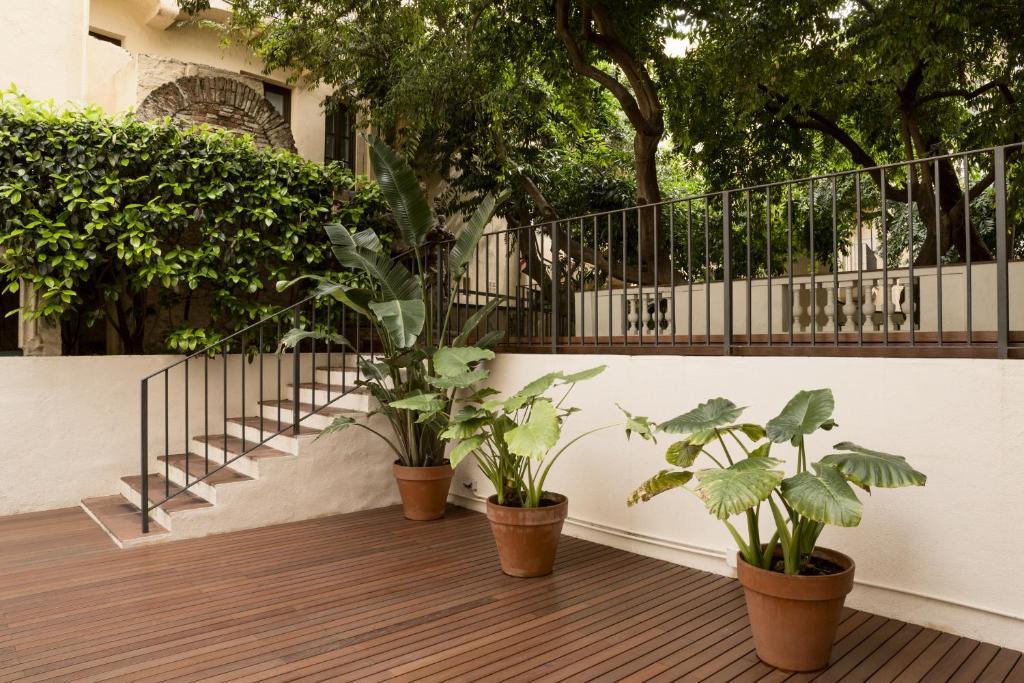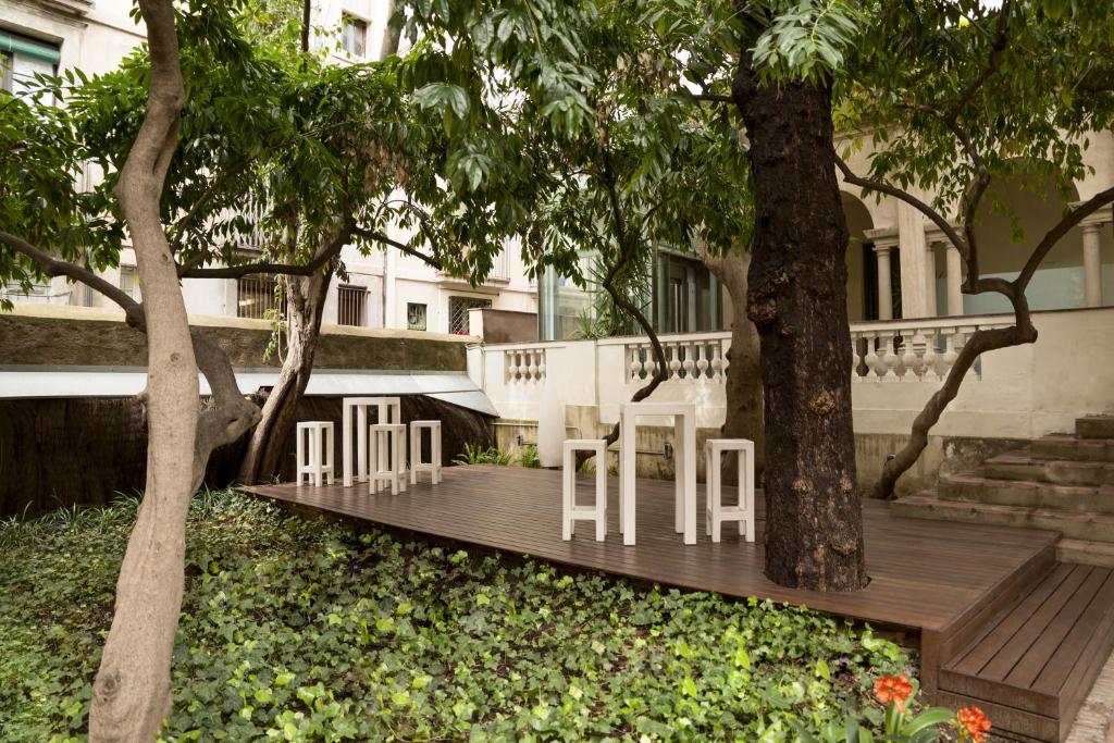 Barul hotelului este situat langă o curte privată și o grădină cu copaci sutici, un sit inclus in patrimoniul arhitectural al Barcelonei.