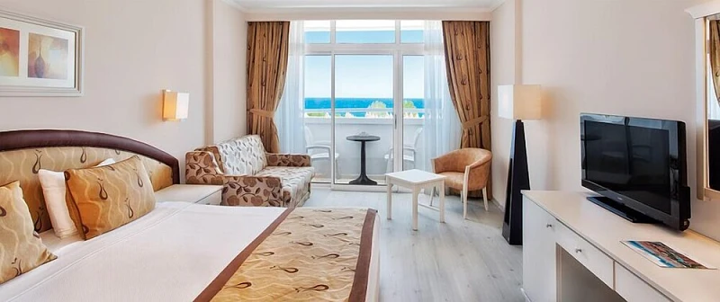 Located at a point where the blue waters of Mediterranean meet thousands of shades of green in the popular resort Kemer, Kiris, PGS Kiris Resort is at a distance of 55 km to Antalya city center, 65 km to the airport and 6 km to Kemer which is famous for its vibrant night life. The resort lies on a 70000 sqm area along the ?Blue Flag? certificated Kiris beach and offers you the vacation you have been longing for with its green garden, large swimming pools and PGS Hotels hospitality. The comfortable rooms of PGS Kiris Resort provide comfortable accommodation with their magnificent views and modern set up. PGS Kiris Resort offers a wide choice of delicacies to food lovers with its restaurants and bars serving the selected samples of various kitchens in the ?Ultra All Inclusive? concept. Swim at the pools where the fun carries on all day or enjoy the Mediterranean with a delicious cocktail at the beach and end your day at Recharge Disco after an enjoyable evening filled with amusing animations... PGS Kiris resort guarantees a wonderful holiday.