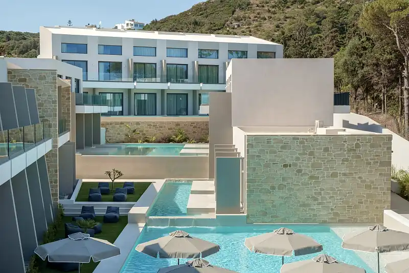 Adults only,2 out door swimming pools,rooms with sharing pool,underground parking. Rooms for Disabled people
