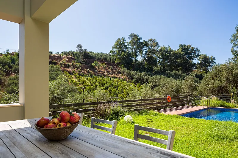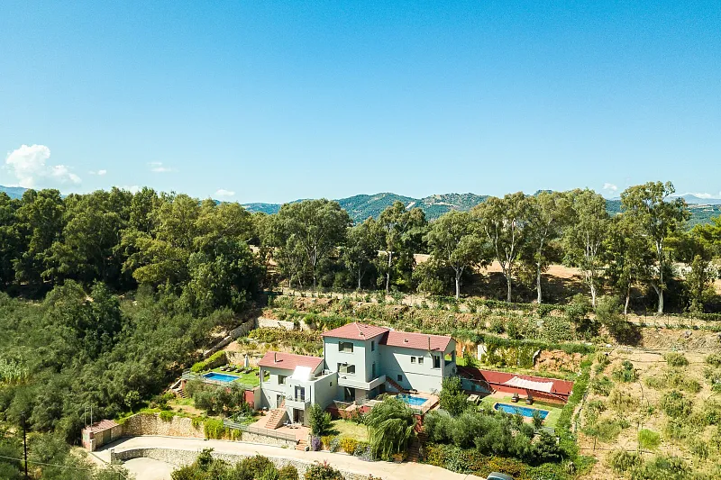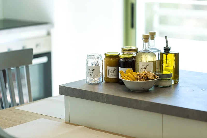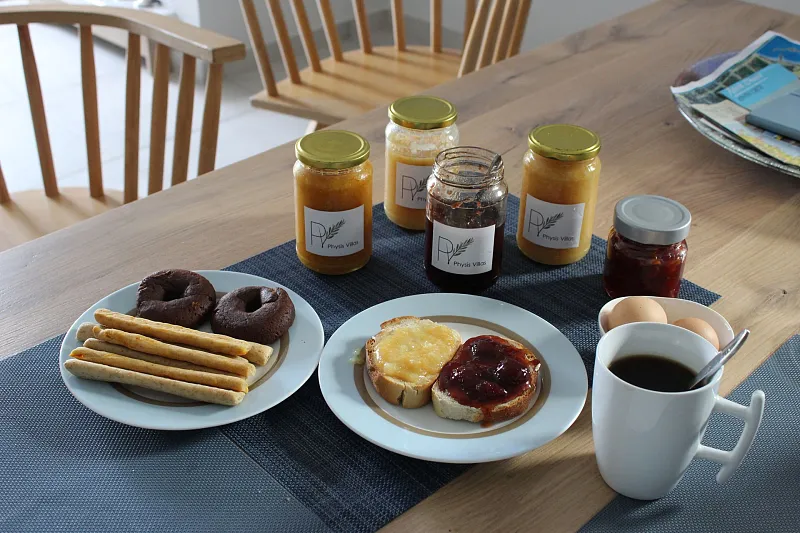 Physis Villas, both Villa Erato and Villa Thalia, feature private pools in the open air, well equipped with umbrellas, comfy sunbeds and outdoor dining space; sunbathe under the greek sun and at night relax by the pool and you will be accompanied by the clean and starry sky. The complex comes with endless mountain views, farms where you could be guided in and amazing organic private gardens extended on 15 acres. Our gardens are carefully designed by Lefteris, the son of the family, who is an agronomist and highly decicated to detail; the gardens offer you fresh products ready to be consumed and they will perfume your stay with the aromatic local plants they grow, such as lavender, marjoram, thyme and dictamnus. We would be glad to show you our heart left hospitality through complementary gifts, most of them received from our gardens; fruits and vegetables, marmalade, olive oils and, handmade desserts to take some Greece back home.
