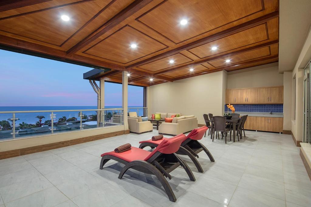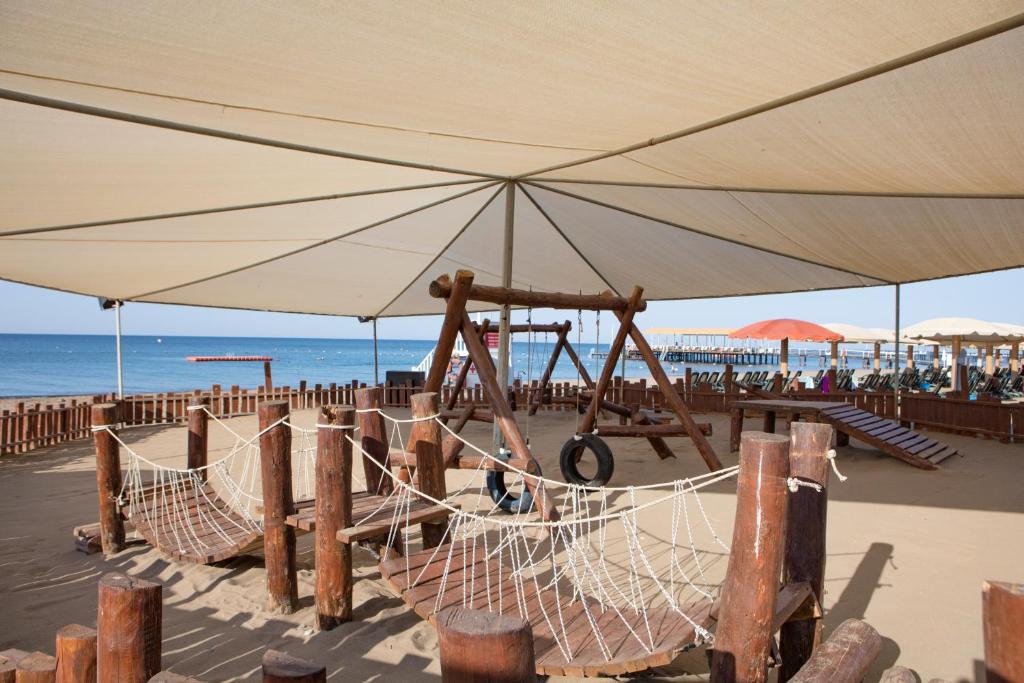 Facilitati hotel : restaurant principal, restaurant a-la-carte, patiserie, snack bar, lobby bar, terasa, bar la piscina, bar pe plaja, piscine exterioare, piscina interioara, tobogane, mini club, mini cinema, centru spa, sauna, baie turceasca, sala de fitness, step, teren de tenis, teren de volei, seri tematice, spectacole, circ, sala de conferinta, sala de jocuri, biliard, etc.