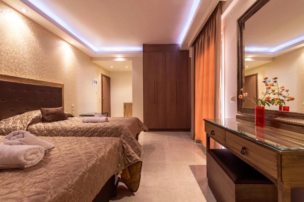 Camerele de la Pirofani sunt dotate cu aer conditionat, TV cu ecran plat, frigider si aparat de cafea. De asemenea, au o baie cu dus si uscător de păr.