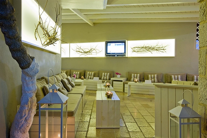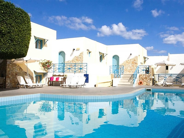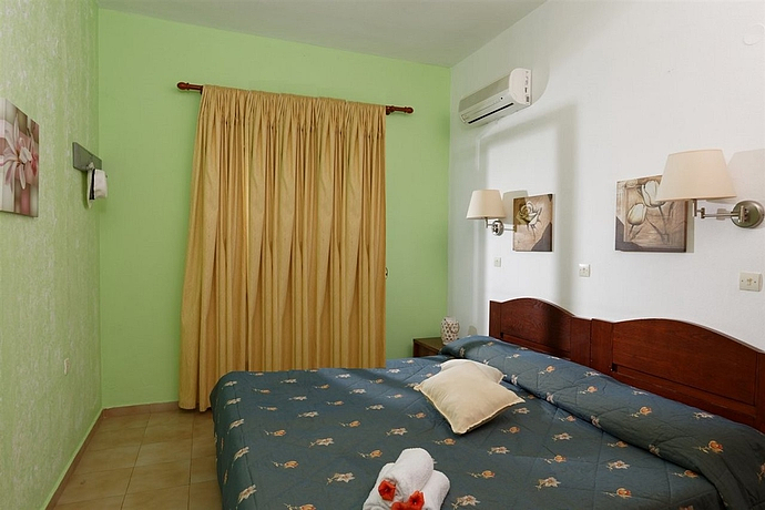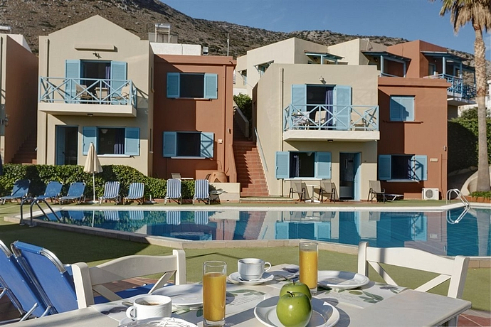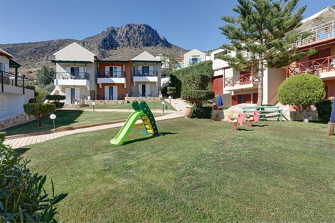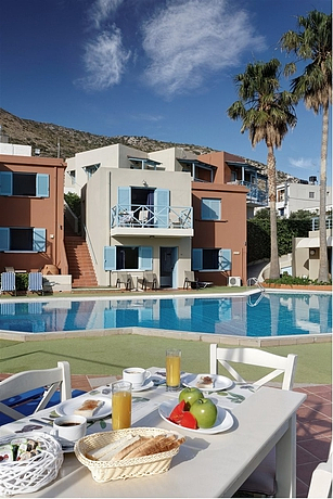 HOTEL: Este hotel cuenta con 2 piscinas, un bar, un bar de piscina, internet y área infantil para que los niños jueguen. SITUACIÓN: Puede encontrar a 24 km el aeropuerto. Se sitúa a una distancia de 5 kilómetros del centro de la ciudad de Malia. HABITACIÓN: Los clientes tienen a su disposición apartamentos con cuarto de baño con ducha, balcón, teléfono, sistema de aire acondicionado con cargo extra, caja de seguridad, cocina americana y nevera.