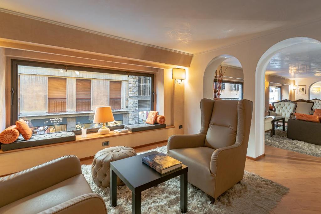 Restaurantul Alla Torre De’ Rossi servește preparate din bucătăria locală și se află la ultimul etaj, cu o terasă panoramică.