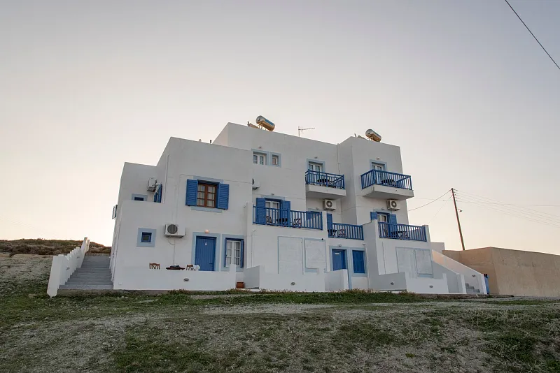 In our property you will find 1 studio, 4 apartments and 2 superior apartments. All of the rooms have private veranda with panoramic unblocked sea view. All the verandas are facing north east so you can enjoy the sun or moon rise while having your coffee or your drink. The location is very quiet, ideal for those who wish to escape and relax. Swimming is not possible right under the accommodation, but the closest beach (with a nice beach bar and sunbeds) is just 350m away. The village center is 10mins walk, so rental of some sort of transportation is recommended.