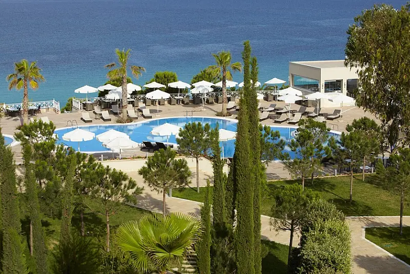 Hotelul luxos este situat pe bratul Kassandra al peninsulei Halkidiki, pe malul marii, la 3 minute de plaja cu nisip, 1 km de centrul orasului Nea Potidea si 5 km de Nea Moudania. Aeroportul din Salonic se afla la 55 km. Sezlongurile si umbrelele de pe plaja sunt gratuite.
