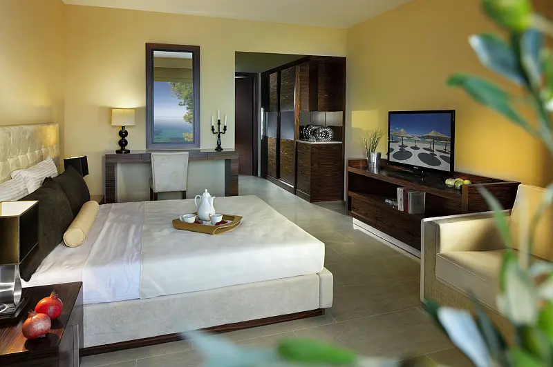 Toate camerele au baie, cada cu hidromasaj, halat si papuci, uscator de par, TV LCD 32”, canale radio, DVD-CD player, acces la internet WIFI de mare viteza, seif electronic, aer conditionat, facilitati pentru prepararea ceaiului si a cafelei, capsule de cafea si pliculete de ceai (gratuit), mini bar (contra cost). Camerele Elegant au o suprafata de 30 mp si o capacitate maxima de 3 persoane. Camerele Junior Suite au o suprafata de 44 mp, doua canapele single si combina dormitorul cu o zona de living, avand o capacitate maxima de 2 adulti si 2 copii. Camerele Superior Junior Suite au o suprafata mai mare (65 mp) si sunt pentru maxim 2 adulti si 1 copil. Camerele Standard Suite au o suprafata de 59 mp, sunt formate din doua incaperi separate: dormitor si living in care exista doua canapele, capacitatea maxima fiind de 2 adulti si 2 copii. Camerele Family Suite au o suprafata de 80 mp, doua dormitoare separate, doua bai (una avand cada cu hidromasaj si una cabina de dus), living separat. Toate Camerele Family Suite sunt situate la etajele superioare, au balcoane spatioase si au capacitatea maxima de 4 adulti sau 3 adulti si 2 copii.