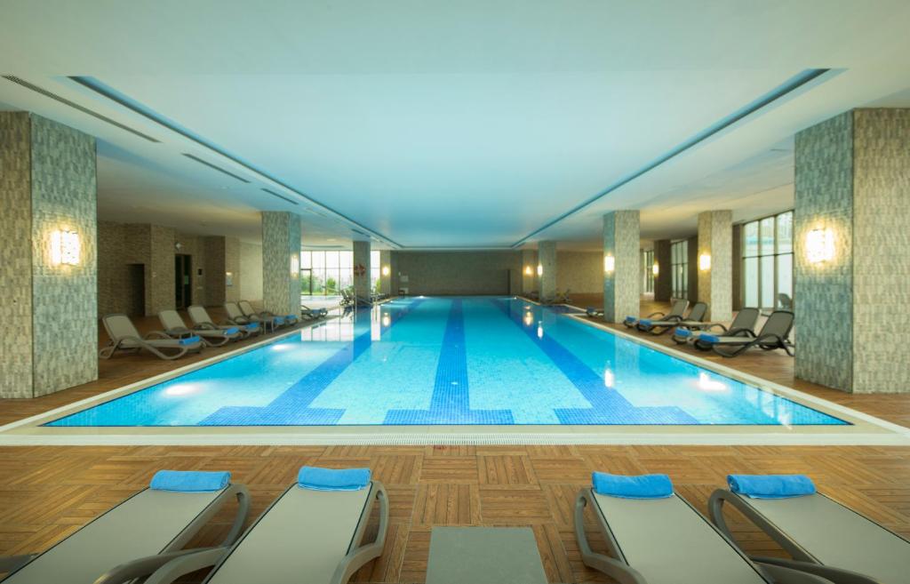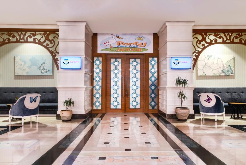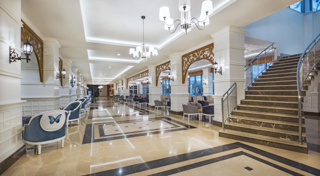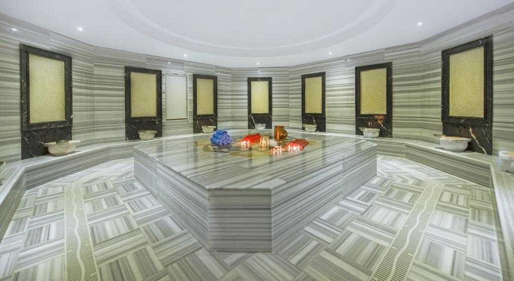 Facilitati hotel : restaurant principal, restaurante a-la-carte, patiserie, snack bar, lobby bar, piscine exterioare, piscina interioara, centru spa, aqua parc, mini club, amfiteatru, spectacole, seri tematice, sala de fitness, zumba, aerobic, step, volei, sporturi acvatice, baie turceasca, shopping center, etc.