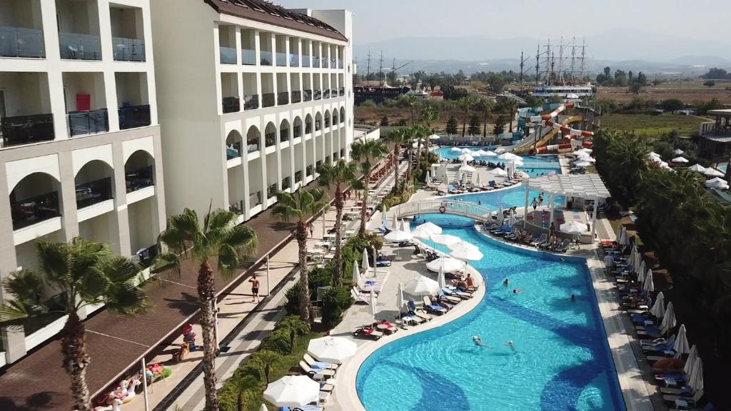 Port River Hotel&Spa se află pe malul mării in Side și oferă cazare de 5 stele, o zonă de plajă privată, un lounge comun și un bar. Această proprietate include un club pentru copii, precum și un restaurant, un parc acvatic și o terasă. Proprietatea include o piscină in aer liber sezonieră, un centru de fitness, o saună și o grădină.