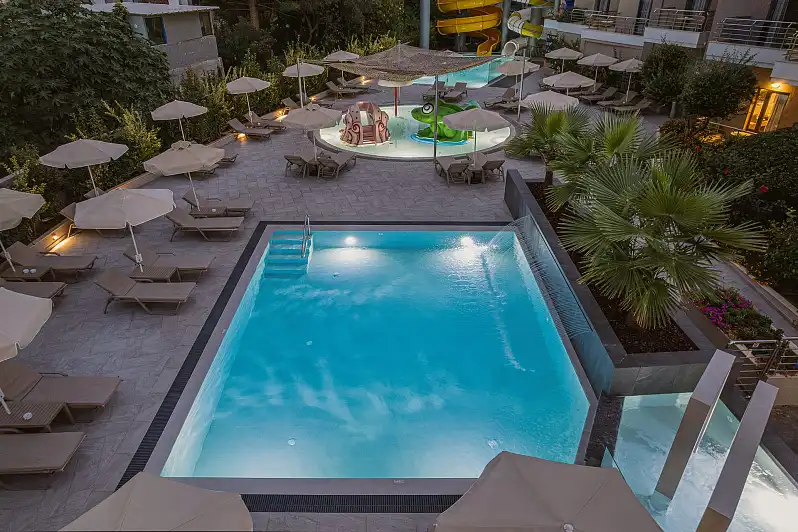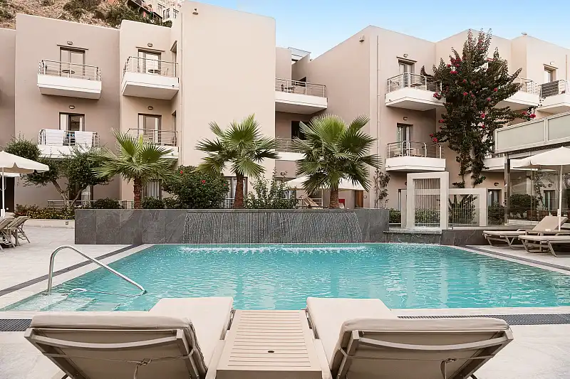 «Porto Platanias Village Resort» has one of the biggest pools in its class – a huge 850 sq. m pool, with a 10 sq. m safe children’s pool in its side. Sun beds and parasols by the pool are free for all the hotel’s guests.