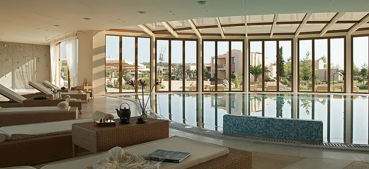 Centrul Spa are piscina interioara, 9 sali de tratamente, sauna privata pentru cupluri, colt unde se vand produse de infrumusetare.