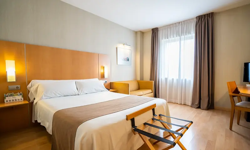 This hotel is located in the district of Campanillas, not far from the centre of Málaga. The sea and the nearest beach are located around 18 km away. Both links to public transport and the Andalucian Technology Park are within walking distance, while Palacio de Ferias is 8km away. The historical centre is 12 km away, with the Picasso Museum being 15 km away.||Built in 2003, this air-conditioned hotel has a total of 92 double rooms spread over 3 floors. The hotel has a lobby with 24-hour reception, a safe, cloakroom and lift access. Further facilities include a café, a bar, a TV room and a restaurant. Business guests can avail of the Internet access and conference facilities. Those arriving by car may avail of the parking facilities. Laundry and room services round off what the hotel has to offer.||The cosy rooms come with an en suite bathroom, a hairdryer, a direct dial telephone, satellite/cable TV, Internet access, central heating, a minibar and a safe.||The hotel has a pool and a sun terrace with sun loungers and parasols.||Guests are invited to serve themselves from the breakfast buffet. At lunchtime and in the evenings, guests may select dishes from an à la carte menu, while at lunchtime there is also a set menu available to choose from. In addition, the hotel caters for guests with special dietary requirements and special requests.