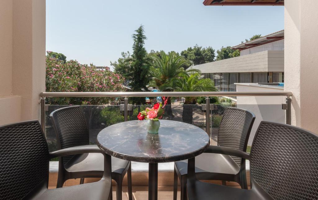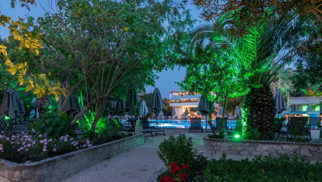 Camerele elegante sunt dotate cu aer condiționat, TV satelit, mini-frigider și balcon cu vedere spre mare sau grădină. Oaspeții se pot bucura de două piscine in aer liber, inconjurate de șezlonguri și umbrele, precum și de un restaurant principal cu preparate grecești și internaționale.